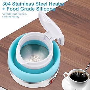Crafted from high-quality heat-resistant silicone, the kettle is lightweight, durable, and collapsible, allowing you to fold it down for easy storage in your bag or suitcase. Its rapid boiling technology ensures hot water in just minutes while automatic shut-off safety prevents overheating or dry boiling.